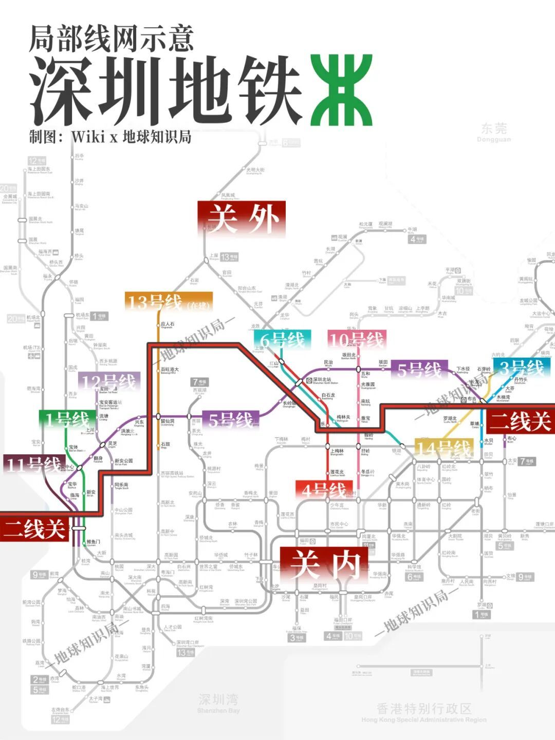 “跨关”的地铁1号线、3号线、4号线、11号线、14号线等线路也同样如此,客流量均比较大,且仅早、晚高峰两小时的客流就占全天客流的三成以上。其中深圳第一条地铁线路1号线更是串联起罗湖-福田-南山-宝安的核心商业办公与居住区域。